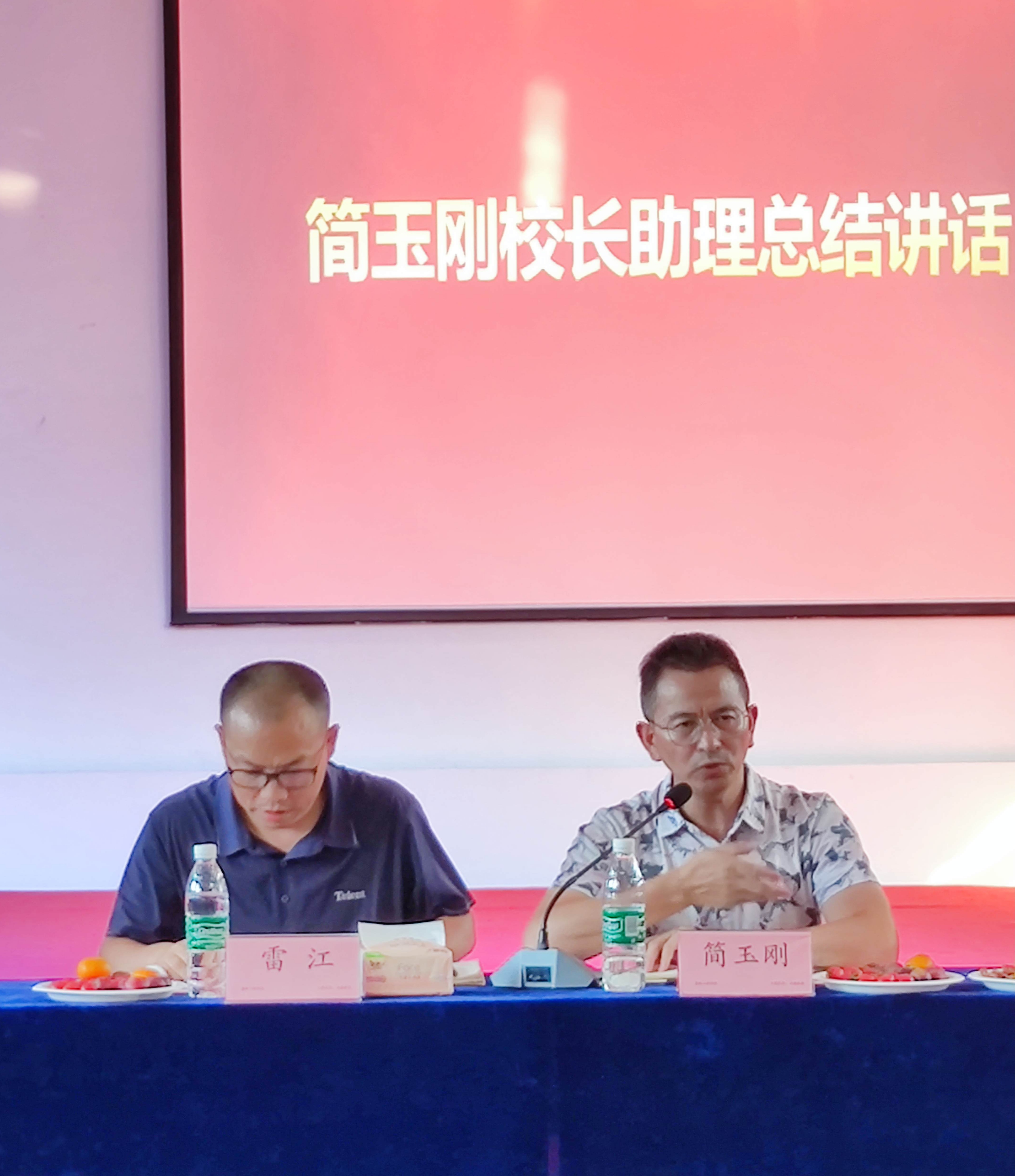 简玉刚助理强调了拥有高尚师德是衡量一名教师是否称职的先决条件,并从学校发展与个人成长存在紧密关系的角度,告诫老师们要感恩事业平台,要找准位置找准方向,与校院共成长。