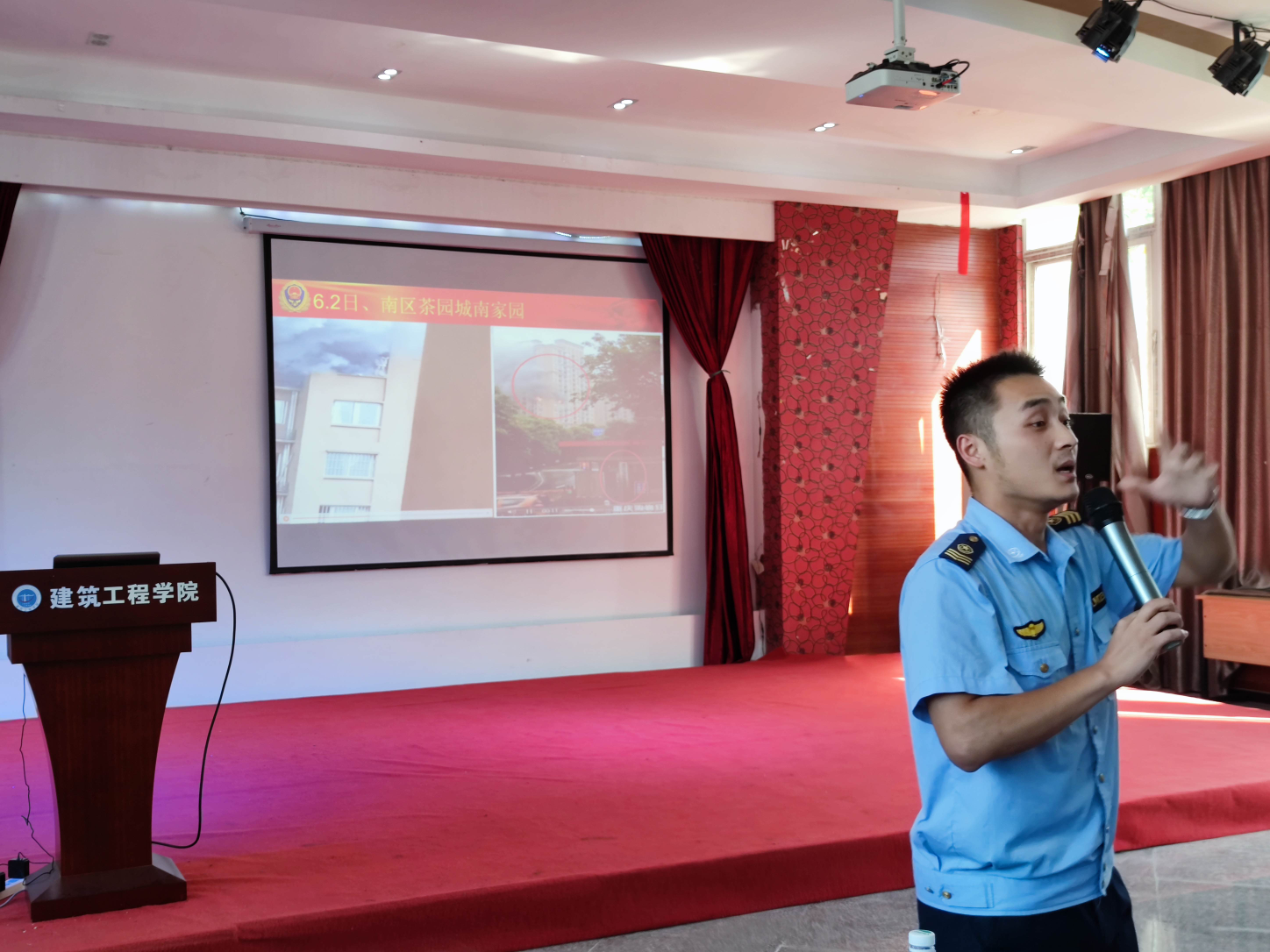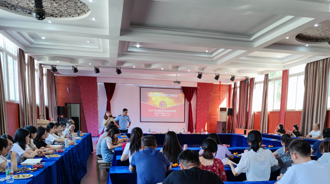 本网讯(文/图 吴俊峰)为普及消防安全知识,强化教职工消防安全意识,提升自我应变和防护能力,2021年9月24日下午15:30,建筑工程学院邀请重庆市利民防火中心在三楼多功能厅为学院教职工进行了一场消防安全知识培训。学院雷江院长等领导全程参加了此次培训。