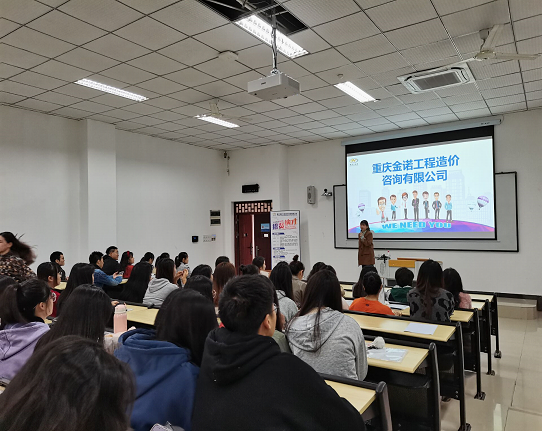本网讯(文/图 陈杰)2021年10月20日14:00重庆金诺工程造价咨询有限公司在6204顺利召开了宣讲会,本次宣讲会主要针对建筑工程学院工程造价的学生,意在为重工毕业生提供更好的就业环境。