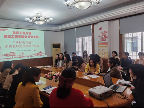 本网讯(文/图 陈思坤、令永强/赵黎明)为贯彻落实“赓续百年初心,牢记担当育人使命”主题教育精神,弘扬我院教师爱岗敬业,无私奉献的职业情操,真正发挥榜样的力量。2021年10月20日,建筑工程学院教师党支部在建筑工程学院会议室212召开 “榜样在身边”优秀教师党员事迹报告分享会,此次会议由教师党支部书记许欢欢主持,全体教师党员参加会议。