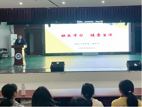 21日晚,建筑工程学院2021级新生见面暨入学教育会在双桥校区报告厅隆重举行,会议由副院长汪金能主持。首先,雷江院长致辞,并介绍了学校学院情况。雷院长要求大家利用好课堂主阵地、专注于专业实践、多参加专业竞赛及创新大赛,同时还要关注个人安全,正确处理好师生及同学之间关系,希望大家在大学四年里做到“成长、进步、成熟”。随后,唐和平书记以“快乐学习,健康生活”为主题从学业达标要求、大学学习生活建议要求、习惯培养建议、品性培养要求、身心健康培养建议、人身财产安全事宜提醒等方面对学生进行了学业及安全教育。