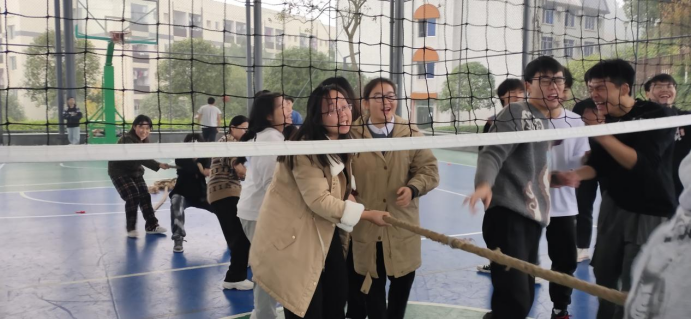 本次活动共设置了四个项目。首先进行的游戏是拔河,参加比赛的同学都积极准备着,其余同学在一旁为自己的团队加油呐喊,场上的所有同学都在努力,这使得整个场面既欢乐又紧张。其次进行的游戏是你比我猜,本游戏不仅考验团队的默契程度,还考验团队个人的肢体表达能力。此过程中,同学们的表情十分丰富。之后进行的游戏是踩气球,每个队伍的全体人员共同参与,在规定的时间内以队伍中剩下的气球数多者为胜。最后进行的游戏是123报数,每个队伍先自行进行队内选拔,选出四名参加小组比赛队员,以留到最后的队伍为胜。