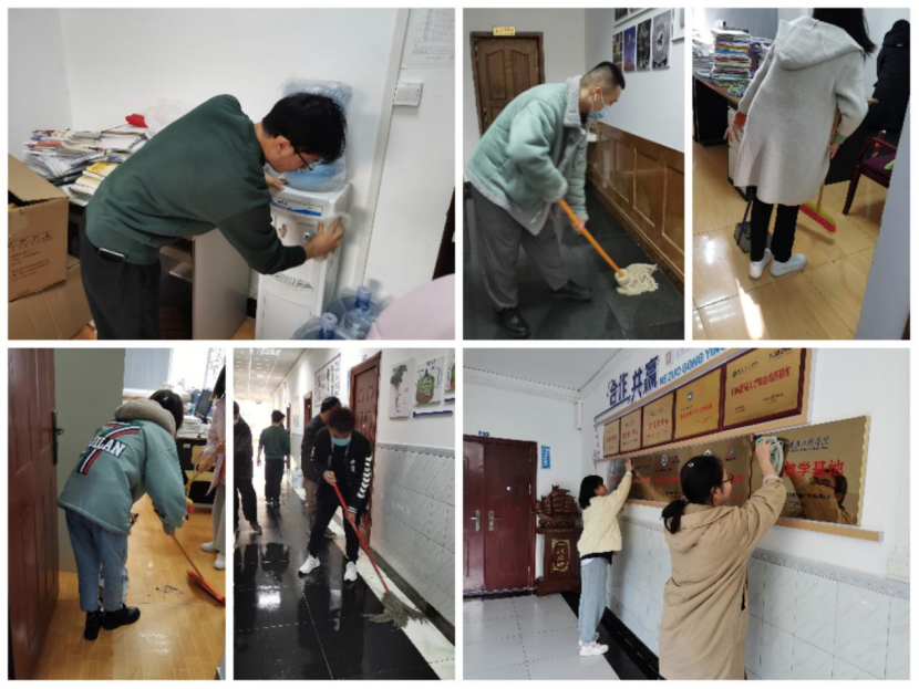 本网讯(图/文 邹观平)为筑牢常态化疫情防控防线,努力为我校师生营造环境干净整洁、秩序安全稳定、文化氛围浓厚的工作、学习和生活环境,建筑工程学院于2021年11月24日14:00在重庆工程学院南泉校区建筑工程学院办公楼开展了“防疫劳动,洁净校园”的大扫除活动。