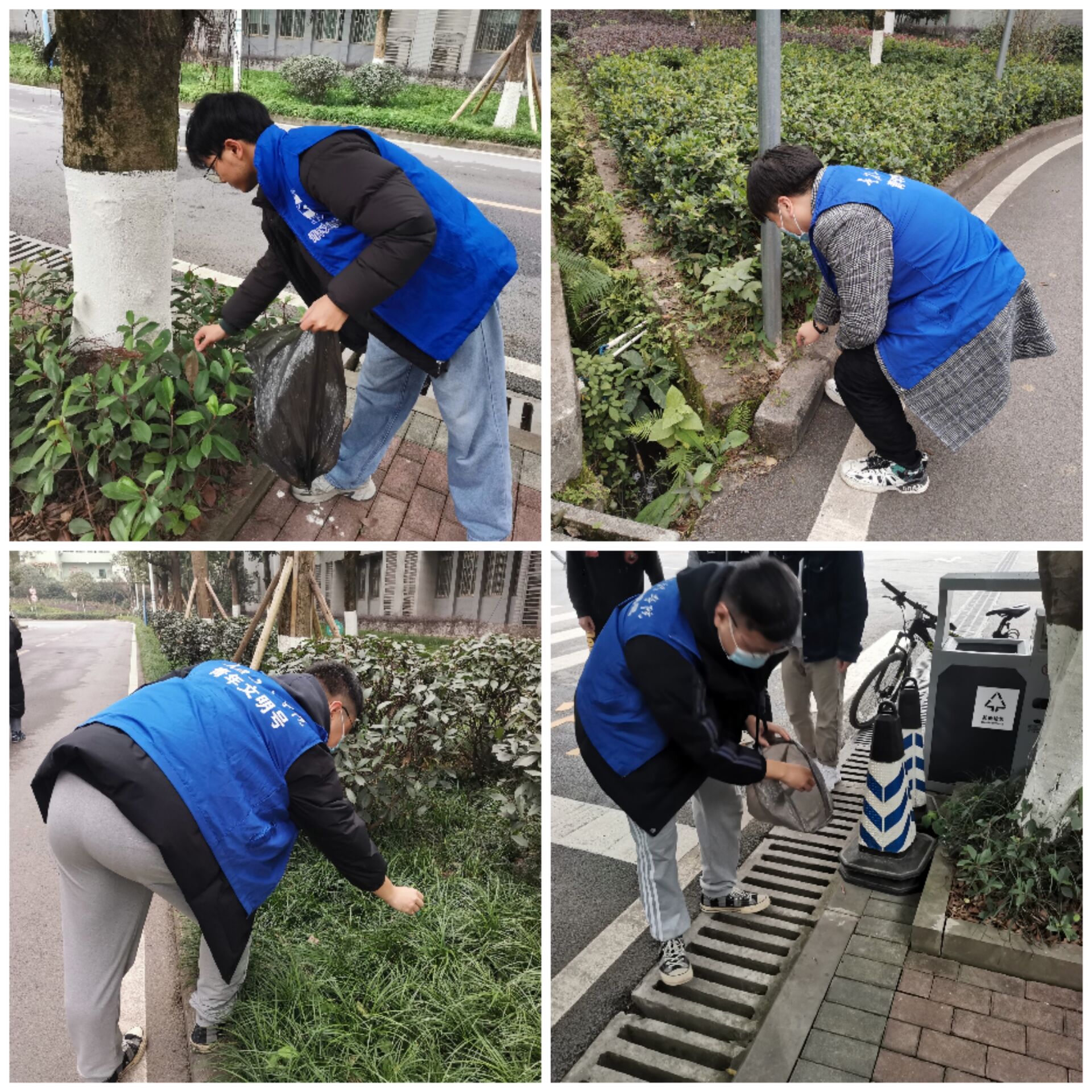 本网讯(图/文 邹观平)为提高同学们的环保意识、提升当代大学生的综合素质。建筑工程学院团委学生会于2021年12月8日14:00在重庆工程学院北门两旁道路开展“保护生态环境、创建绿色家园”活动。