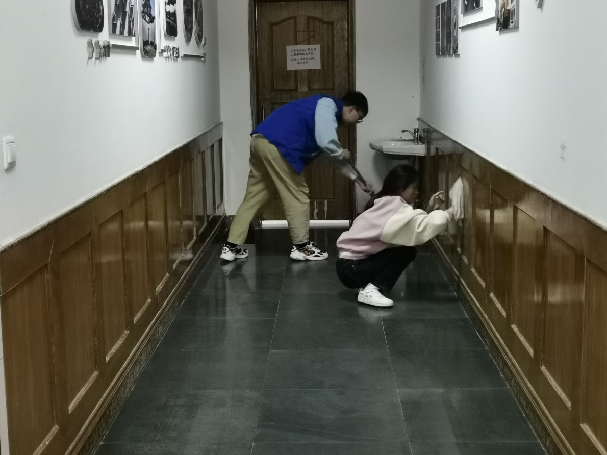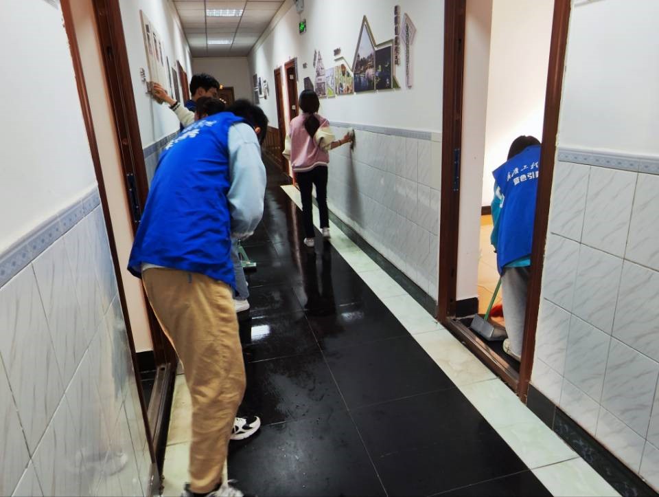 志愿者们分组打扫了办公楼与一教值班办公室,扫地、拖地、整理摆放办公桌上的物品,原本整洁明亮的办公室在志愿者们的清扫后变得更加温馨。在服务过程中志愿者们敢吃苦、不怕脏、不喊累、相互配合。志愿者们用自己的实际行动为学院增添了一份温馨、一份清新,一抹明亮。