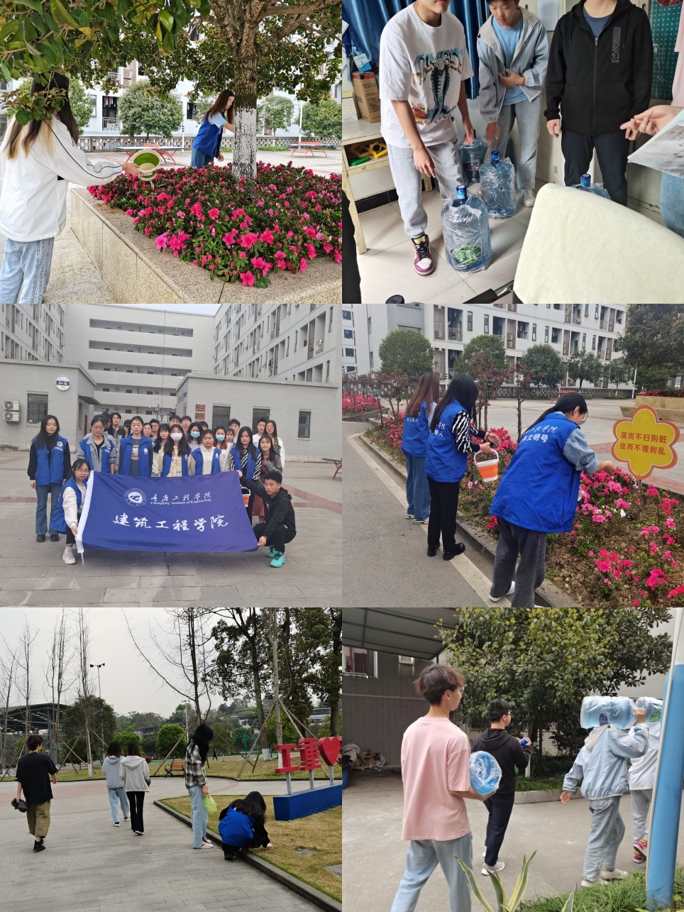 本次活动由我院25名志愿者组成志愿服务团队,涵盖共青团员、学生干部、学生助理,在我校开展爱国卫生运动清洁美化校园环境以及为同学搬水等志愿服务等专项行动。活动中,志愿者分成三组,一组负责道路清洁,二组负责给植被浇水,三组负责为需要搬水的寝室提供搬水服务。