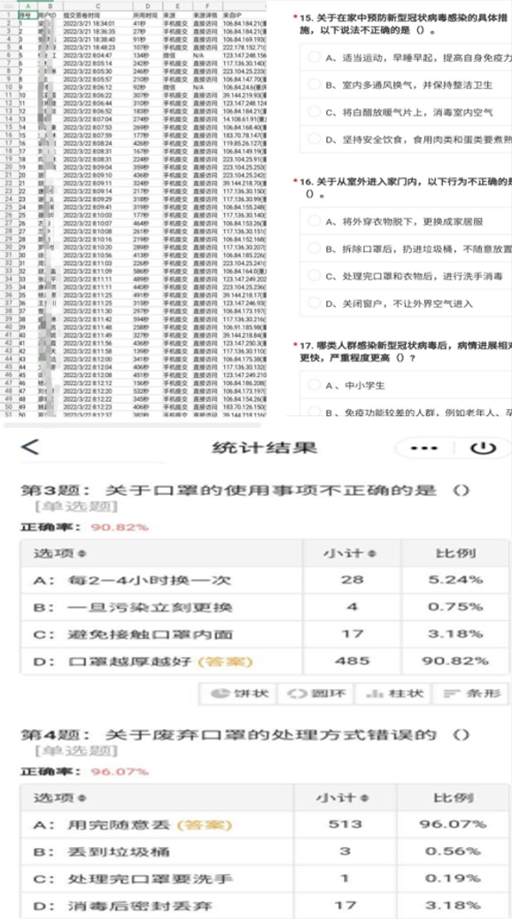 此次活动面向建筑工程学院全体学生,依托网络平台的方式组织同学们进行线上防疫知识问答,参与答题的同学达到800余人。工作人员在开展线上防疫知识问答活动的同时还强调了此次活动的重要意义以及参与方式、答题要求,希望同学们能通过防疫知识问答了解新冠肺炎的传播途径和有效的防护措施。