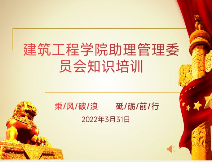 本网讯(图/石小祥 文/王成艳)为增强助理团队的凝聚力和战斗力,积极宣传时代楷模力量,大力弘扬爱国奉献、爱岗敬业精神,激发助理们的干事热情,争做新时代的奋斗者。建筑工程学院于3月31日1在学院办公楼三楼多功能厅开展 “传红色基因,坚定理想信念”助理管理委员会党课学习。活动由学院党总支副书记唐和平主持,建筑工程学院全体学生助理参加。