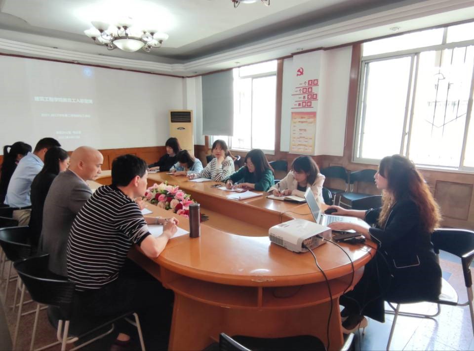 本网讯(图/文 张妙青)为了使新教师尽快熟悉学院教学制度。4月13日下午,建筑工程学院(下称“学院”)于办公楼212会议室开展2022年春季新员工行政人事工作培训会,由办公室主任毛云莹带领学院全体新教师一起学习学校各种规章制度。