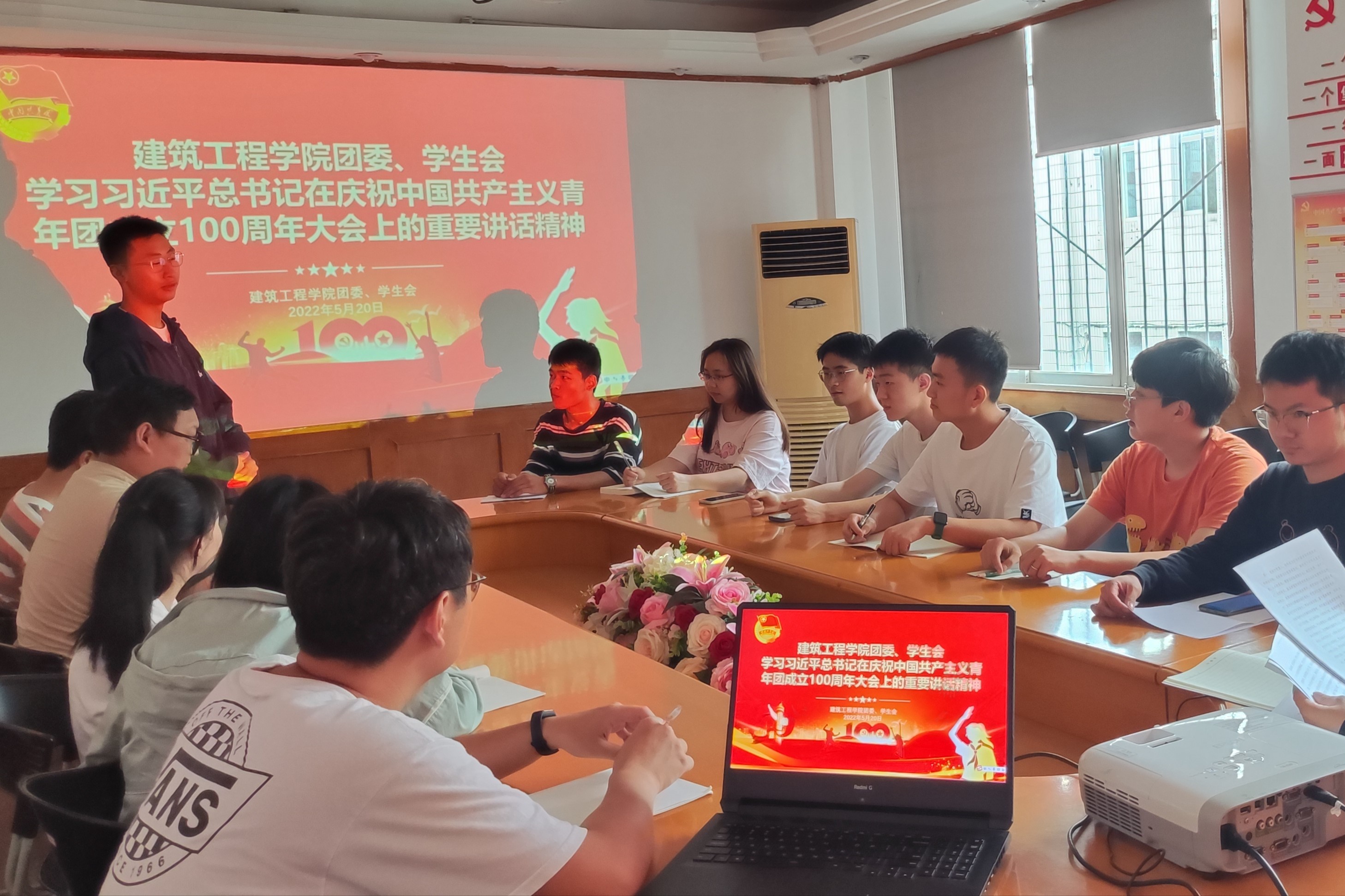 本网讯(图/文 李鹏翔)为庆祝中国共产主义青年团成立100周年,建筑工程学院于5月20日13:00—13:50在建筑工程学院办公楼212会议室开展了关于“习近平总书记在庆祝中国共产主义青年团成立100周年大会上的重要讲话精神”学习会。出席本次会议的有建筑工程学院学院团委书记李鹏,团学干部代表。