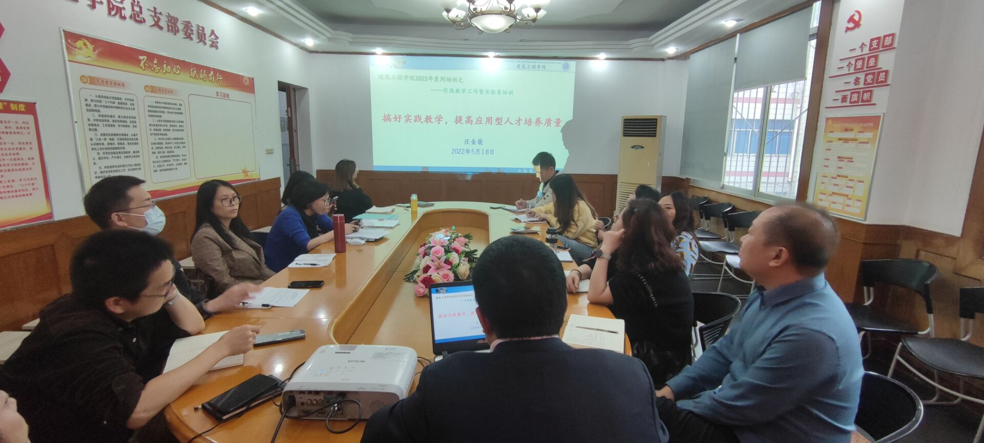 本网讯(文/图 张雨曦 )为全面推进实验教学工作,协调系部与实验教学中心的沟通合作,建筑工程学院于5月18日召开了2022年实验教学工作暨实验员培训会议,会议由汪金能副院长主持,雷江院长、教务科长、各系部主任及实验员参加了本次会议。