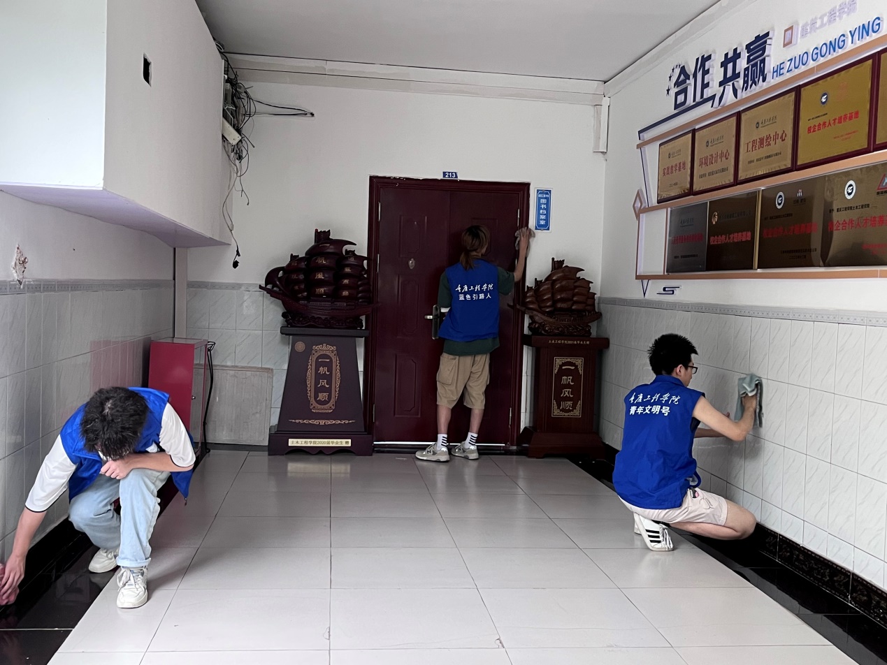 此次活动共招募了17名志愿者,要求志愿者们自带洁具,在工作人员的指引下分组打扫办公楼。志愿者们分工明确,态度积极,敢吃苦、不怕脏、不喊累、相互配合。最后,办公楼被志愿者们整理的干干净净,高度发扬了青年志愿者无私奉献积极向上的精神,充分展现了志愿者们充满活力的青春风采。