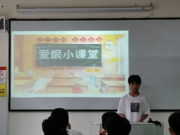 本次活动由王伟同学进行有关爱眼知识的宣讲,从认识眼睛,近视眼的成因及危害,近视前的十大征兆,我们该如何预防近视,呼吁保护视力五个方面进行宣讲。剖析了近视眼的形成,同时讲解了预防措施,让同学们在生活学习中能够正确运用自己的眼睛,保护自己的眼睛。从而呼吁大家珍惜和爱护自己的眼睛在宣讲结束之后和参与人员互动,让大家简述自己的感悟。