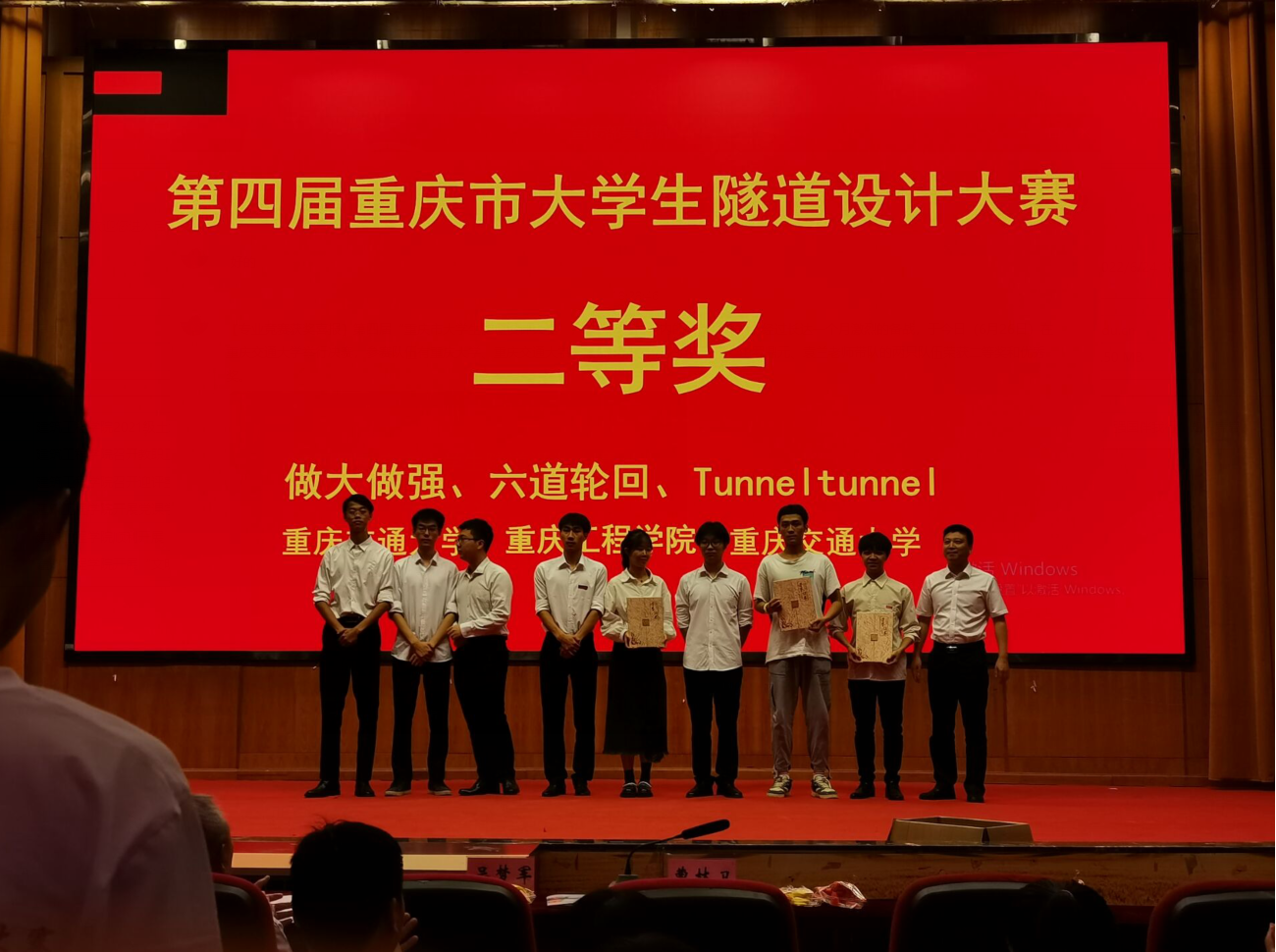 本网讯(文/图 罗鼎元) 第四届“重庆市大学生隧道设计大赛”为目录内的省部级竞赛,经过长达一个月激烈的备战,于6月26日在重庆交通大学举行决赛,参赛队伍有重庆大学、重庆交通大学、重庆科技学院等20只队伍,由我院罗鼎元、袁兰老师带队的两只队伍荣获二等奖和优秀奖。