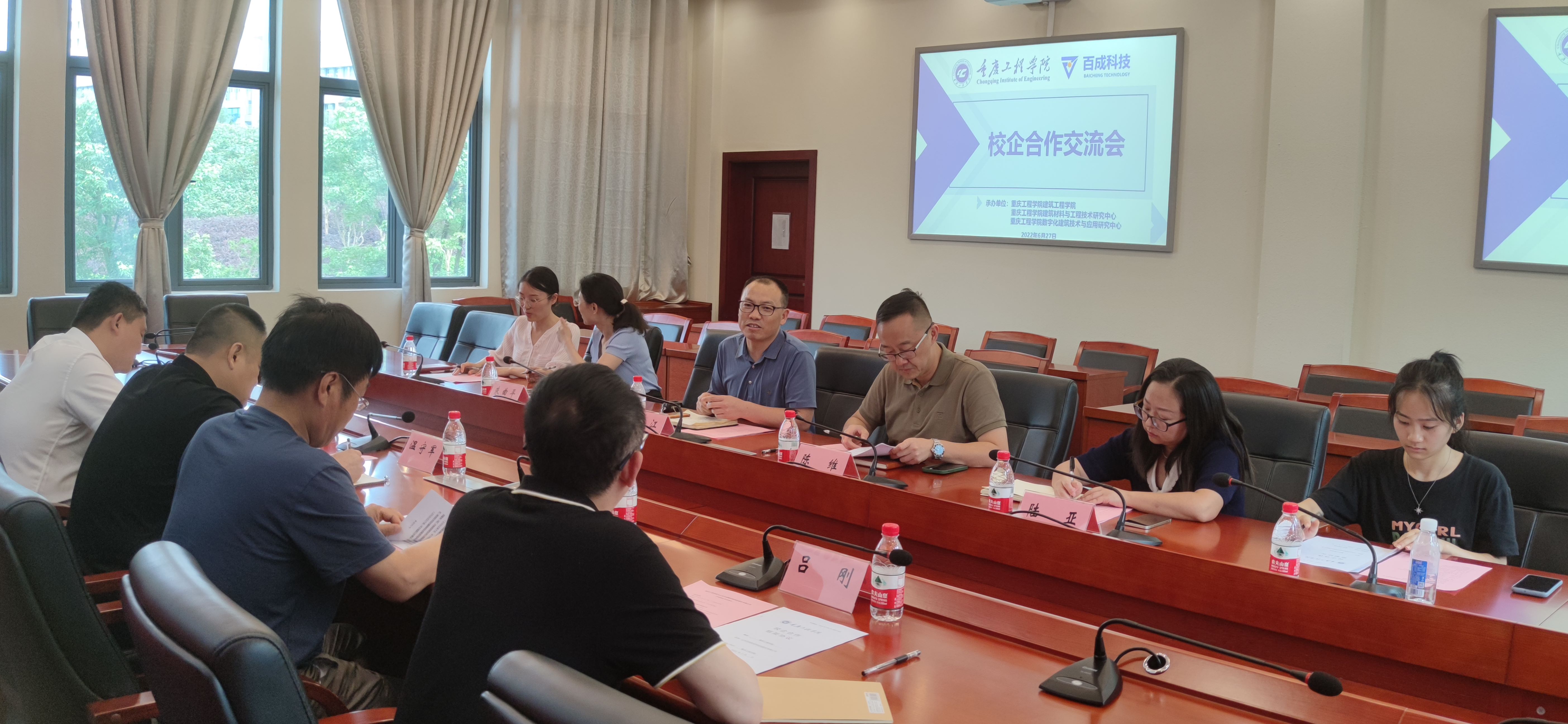 本网讯(文/图 张鑫)6月27日,山东百成新材料科技股份有限公司副总经理温守军、副总经理张国恩、业务部副部长牛月冰、董事吕刚一行来到重庆工程学院,与学校科技处陈维处长,建筑工程学院雷江院长、朱曲平副院长,建筑材料与工程技术研究中心陆亚主任等进行校企合作洽谈。