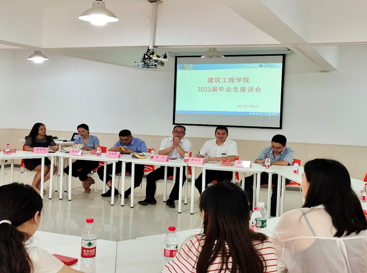 本网讯(文/图 元云丽)7月2日中午,在2022届毕业生离校之际,建筑工程学院于大学生服务中心205沙龙活动室举行2022届毕业生座谈会暨校友联络员聘任仪式会。学院院长雷江、党总支副书记唐和平、各系系主任和毕业班辅导员出席此次会议,学院2022届毕业生代表参加会议。