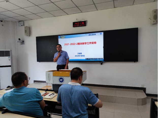 本网讯(文/图 吴俊峰) 为推动各项教学工作的顺利展开,确保上下半年工作的无缝衔接,进一步做好合格评估准备工作,7月8日,建筑工程学院在第六教学楼110室召开全体教职工大会,安排2021-2022-2期末教学工作。学院全体领导及教职工参加,副院长汪金能主持。