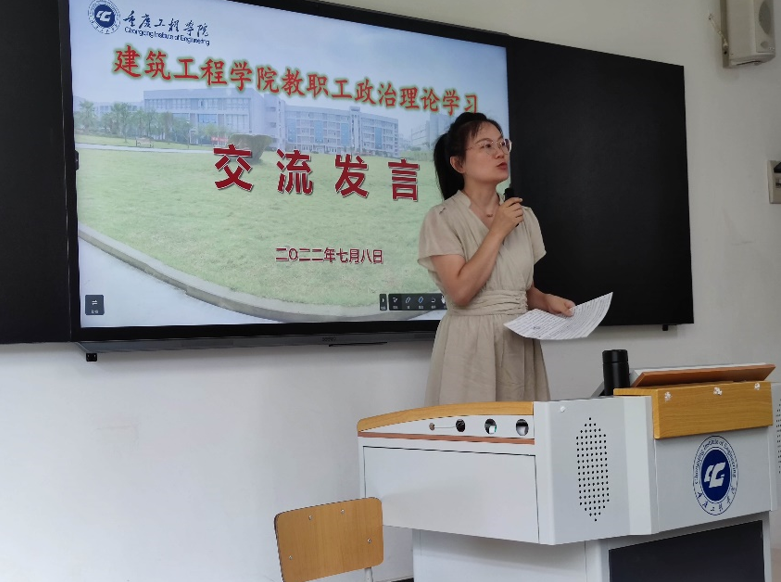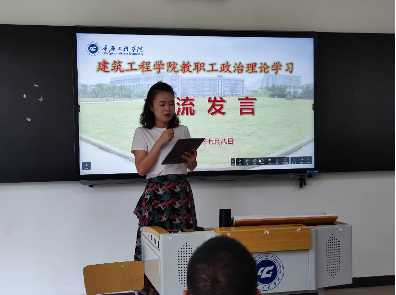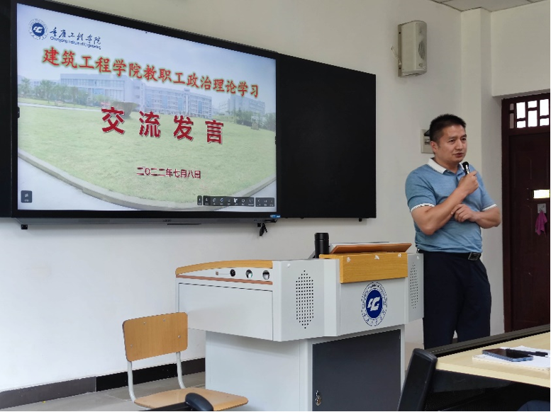本网讯(文/图 吴俊峰) 为进一步强化教职工政治理论学习,不断提升教职工政治理论水平,学院每月开展一次教职工政治理论学习。7月8日,建筑工程学院在第六教学楼110室组织全体教职工就上半年政治理论学习的体会收获进行交流,会议由党总支书记唐和平主持。