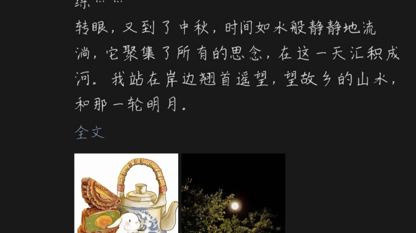 活动开始,工作人员在QQ群发布活动通知,124位同学们积极地将自己的读书心得发布在QQ空间、朋友圈和自己的家人们分享,在活动过程中,同学们还踊跃的分享自己中秋趣事,加深中秋氛围,使活动在欢声笑语中有序进行。活动结束后,同学们表示作为新时代的大学生,传承和发扬传统佳节文化是我们不可推卸的责任,我们应当以身作则,做好中华民族优秀传统文化的传承者。