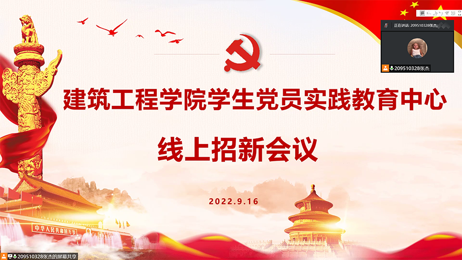 本网讯(文/图 陈海艳)为了更好地开展学生党员实践教育工作,提高学生党员自身意识,建筑工程学院于9月16日举行线上招聘,2021级入党申请人、入党积极分子共有19名同学参加。