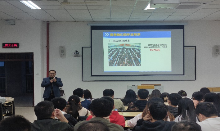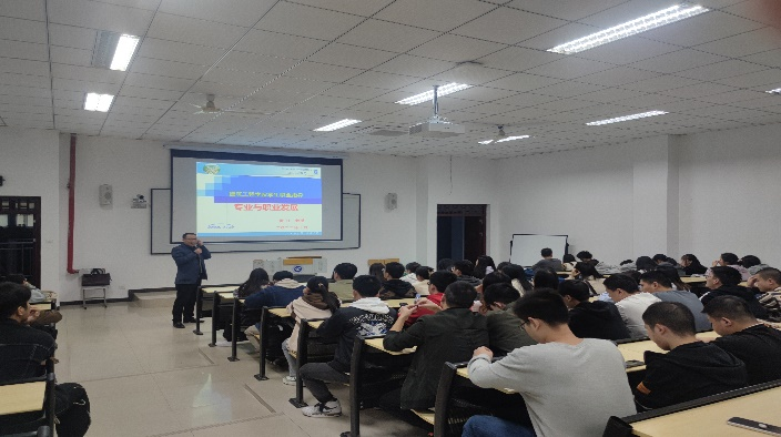 本网讯(图/文 建筑工程学院 唐茂、蒋婳)2022年10月12日,为进一步增强建筑工程学院学子对当前就业形势的了解,以及未来就业目标和方向,建筑工程学院雷江院长在我校6201开展了 “建筑工程学院专业与职业发展”讲座,本次讲座的宣讲对象主要为我校工程造价、土木工程以及环境设计专业的大三及大四学生。