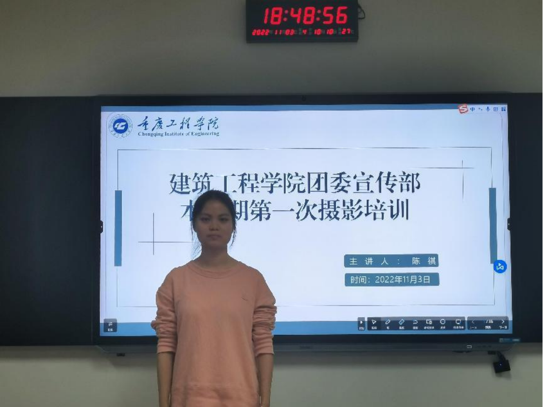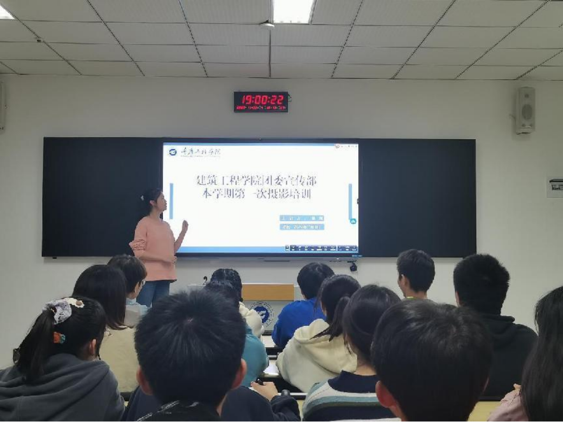 本网讯(图/徐玲琳 文/袁梦)为提高建筑工程学院第七届团委、学生会学生骨干的工作能力和综合素质,进一步增强大家的拍摄能力。建筑工程学院团委宣传部于2022年11月3日19:00在第六教学楼210教室开展本学期第四次学生骨干综合素质培训会——摄影培训。本次培训会面向建筑工程学院团委、学生会全体成员,共计32人参与。