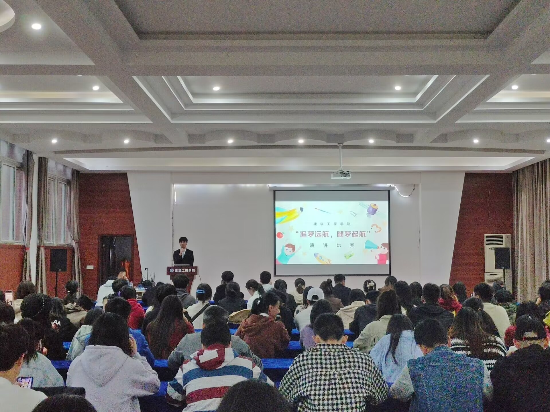 本网讯(图/刘彦红 文/易宏)为加强建筑工程学院的学风建设,丰富建筑工程学院学子的课余生活,增强同学们的思想交流。建筑工程学院学生会学习部于11月6日在建筑工程学院办公楼三楼多功能厅开展“追梦远航,随梦起航”主题演讲活动。本次演讲比赛共有14名同学参赛,建筑工程学院团委副书记李敏老师和4名学生担任评委。