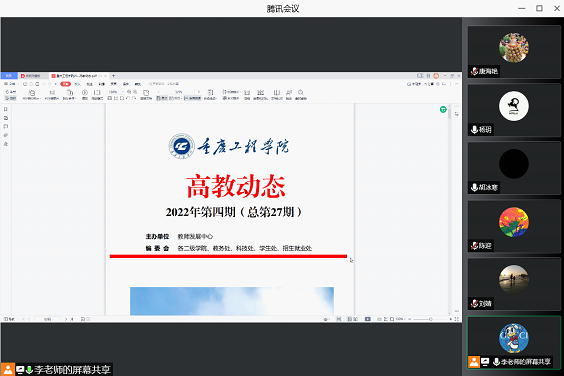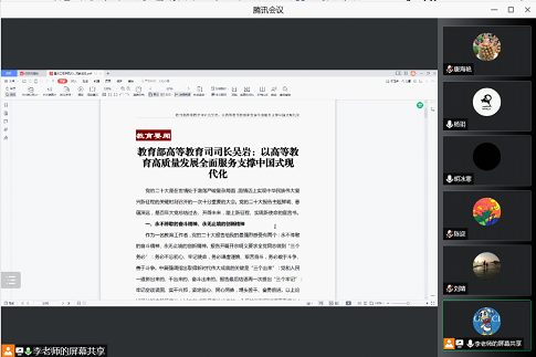 本网讯(文/图 唐海艳)建筑工程学院环境设计系于2022年12月7日14:40-15:30在腾讯会议召开了系教研活动。会议就《高教动态》第四期进行了集体学习交流。