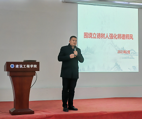 (文/图 窦广陵)“做学生锤炼品格的引路人,做学生学习知识的引路人,做学生创新思维的引路人,做学生奉献祖国的引路人”,抓师德师风建设,做“四有”好老师,高尚的师德师风是中华民族的优良传统,是新时代教师教育的首要任务。2月15日下午,建筑工程学院开展了《围绕立德树人强化师德师风》为主题的培训。