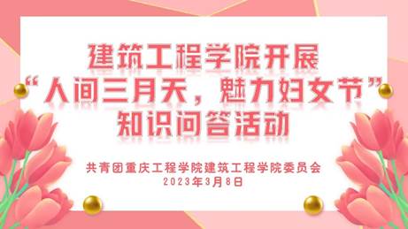 本网讯(文/陈金燕 图/杨晨)为迎接““三八”国际妇女节的到来,弘扬中华民族传统美德,积极践行社会主义核心价值观。建筑工程学院学生会生活部于2023年3月8日8:00—22:00在线上开展了“人间三月天,魅力妇女节”线上知识问答活动,本次活动面向建筑工程学院全体学生。