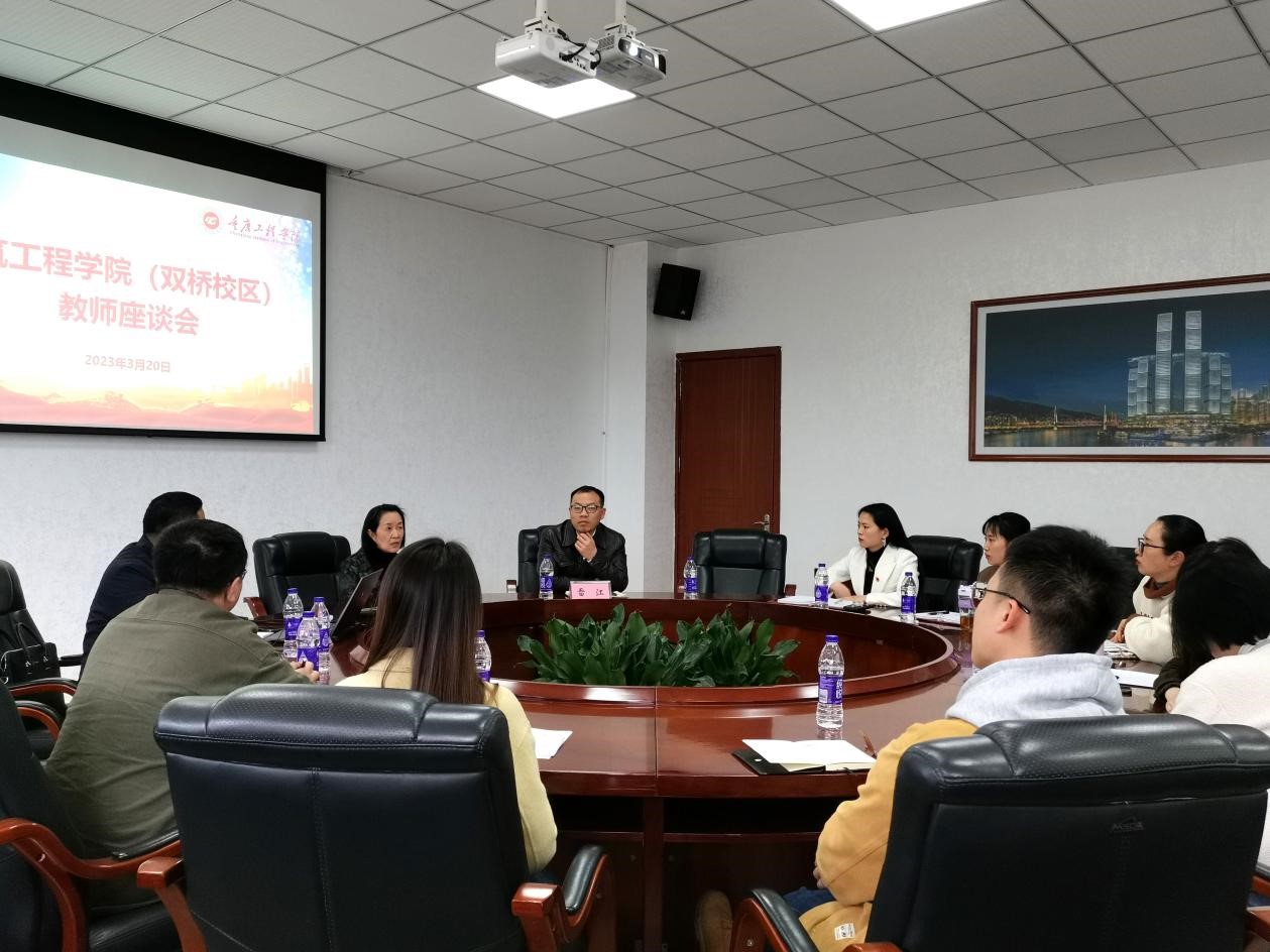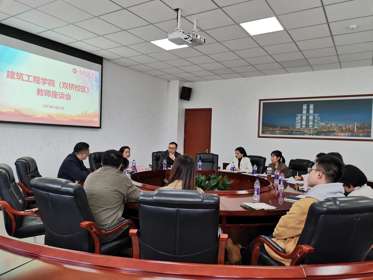 本网讯(文/图 漆俊) 3月20日下午,建筑工程学院院长雷江、副院长汪金能一行来到双桥分校区,召集学院双桥分校区教师,在第三会议室里召开了座谈会。双桥分校区的杨桂副校长出席了会议。