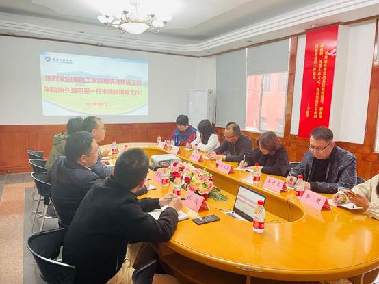 本网讯(文/图 林俊) 2023年4月7日,南昌工学院建筑与环境工程学院院长盛明强一行来我院进行考察交流,学院院长雷江、副院长汪金能和系主任参加了交流会。