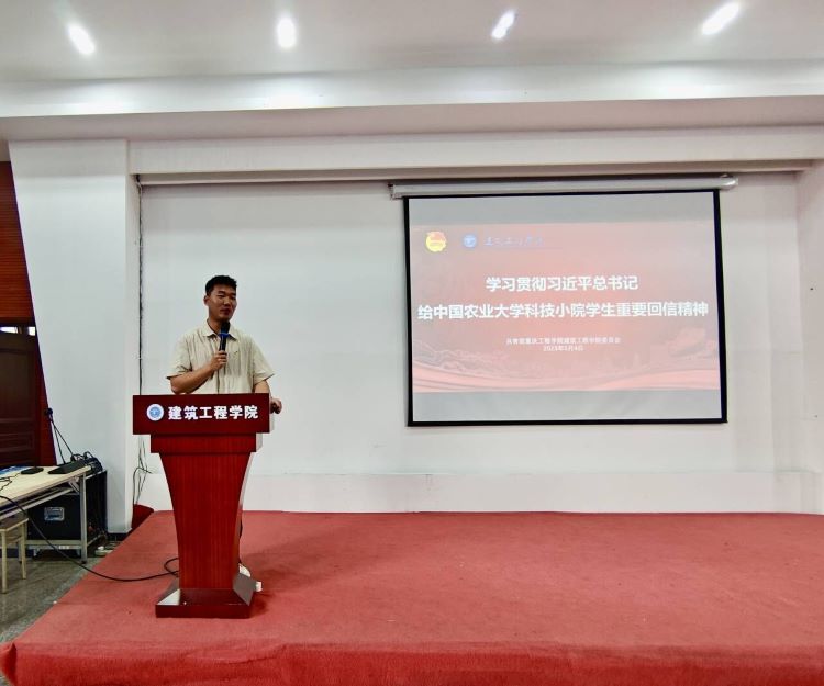 本网讯(文/图 廖梓丞)青年是民族的希望,更是国家的未来。5月4日下午,建筑工程学院召开学习贯彻习近平总书记在给中国农业大学科技小院的学生回信的重要精神座谈会。建筑工程学院团委书记金质纯出席会议并讲话。