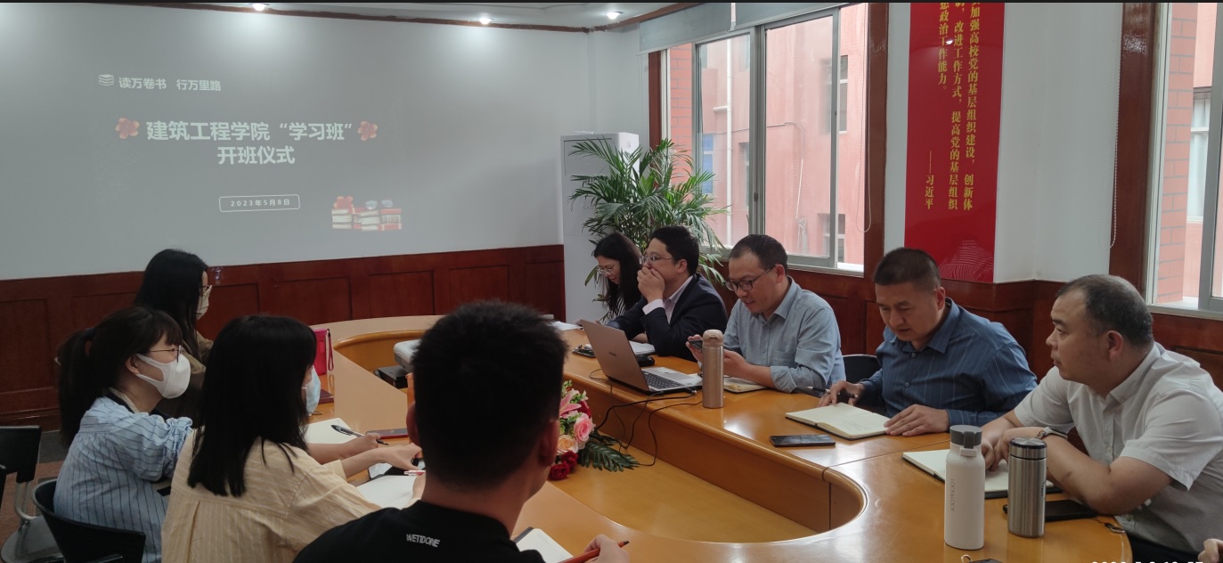本网讯(文/图 蒋晓瑜)2023年5月8日下午,建筑工程学院在第一教学楼办公楼212会议室组织开展了关于“学习班”学习交流活动。此次学习由党总支副书记唐和平主持,院长雷江主讲,学院领导、科室负责人、“千里马计划”后备人员共15人参加了会议。