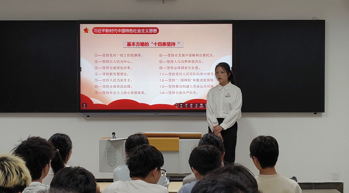 最后,20级全体同学认真学习了习近平总书记在十九大报告中提出的基本方略的“十四条坚持”,明白了新时代应该怎样坚持和发展中国特色社会主义。