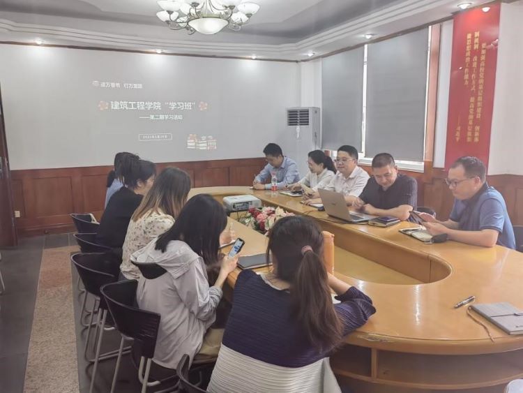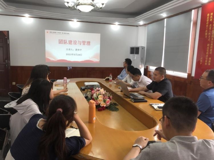 本网讯(文/图 高涛涛)2023年5月29日下午,建筑工程学院在第一教学楼办公楼212会议室组织开展了“学习班”第二讲学习交流活动。此次学习由院长雷江主持,党总支副书记唐和平主讲,学院领导、科室负责人、“千里马计划”后备人员共13人参加了会议。