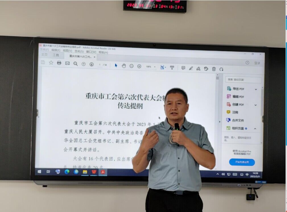 本网讯(图/樊玉婷 文/刘登峰)建筑工程学院分工会于5月31日下午15:00在6117教室召开会议传达学习重庆市第六次工代会精神。唐和平书记主持会议,全体教职工参加。