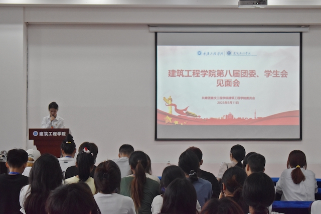 本网讯(文/图 廖梓丞)为构建师生间高效沟通的桥梁,促进建筑工程学院团委、学生会高质量发展。建筑工程学院团委、学生会于9月11日下午在建筑工程学院办公楼三楼多功能厅举办第八届团委、学生会见面会。建筑工程学院党总支副书记唐和平,团委书记张徐宇,团委副书记李敏,团委、学生会全体成员共同参与此次会议。