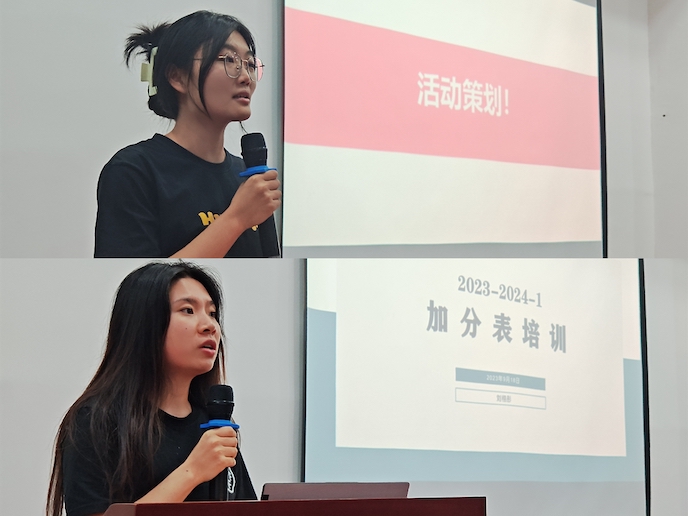 会上,余婷学姐通过对比两篇新闻稿件,让同学们了解到了撰写新闻稿、快讯的过程中应该注意的细节、格式、语病等问题。刘栩彤学姐以几份优秀的加分表为引,详细介绍了制作加分表的过程中该注意哪些问题。朱悦学姐用一份份存在问题的策划案,为同学们具体展示了撰写策划时常见问题,并提出了具体解决措施。廖梓丞学长从相机的基本构造入手,强调了在各种活动的拍摄中所需的经验、技巧、注意事项。