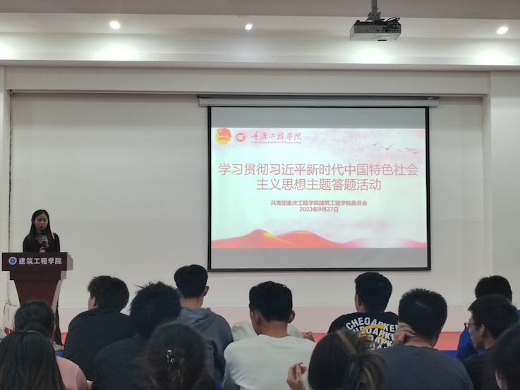 本网讯(图/ 刘子杨 文/ 廖梓丞)为深入学习习近平新时代中国特色社会主义思想,进一步提高建筑工程学院学子的政治素养。建筑工程学院团委宣传部于9月27日晚上在建筑工程学院办公楼三楼多功能厅开展“学习习近平新时代中国特色社会主义思想”主题答题活动。此次活动面向建筑工程学院全体同学。