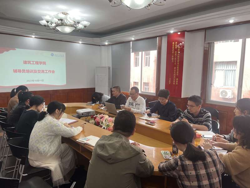 本网讯(文/图 张徐宇)10月11日下午,建筑工程学院在学院会议室召开了辅导员培训交流工作会,会议由党总支副书记唐和平主持,雷江院长、系主任安雪玮、李颖、林俊及全体辅导员参加了会议。