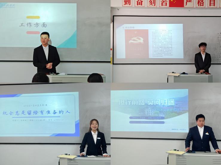 本次答辩会主持人首先讲解了答辩过程中的相关注意事项,希望同学们严格遵守答辩纪律的要求,并且期望同学们不管结果如何,都要不忘初心砥砺前行。答辩过程中,每位同学就自己的思想品德、学业成绩、工作经历、社会实践等方面进行PPT汇报,讲述自己精彩优秀的过往,阐述自己竞争国家励志奖学金的核心竞争力。他们条理清晰、表达流畅,充分展现出他们良好的语言表达能力,表示国家励志奖学金答辩会学院优秀学子提供了一个展示个人风采、提升综合能力的平台。