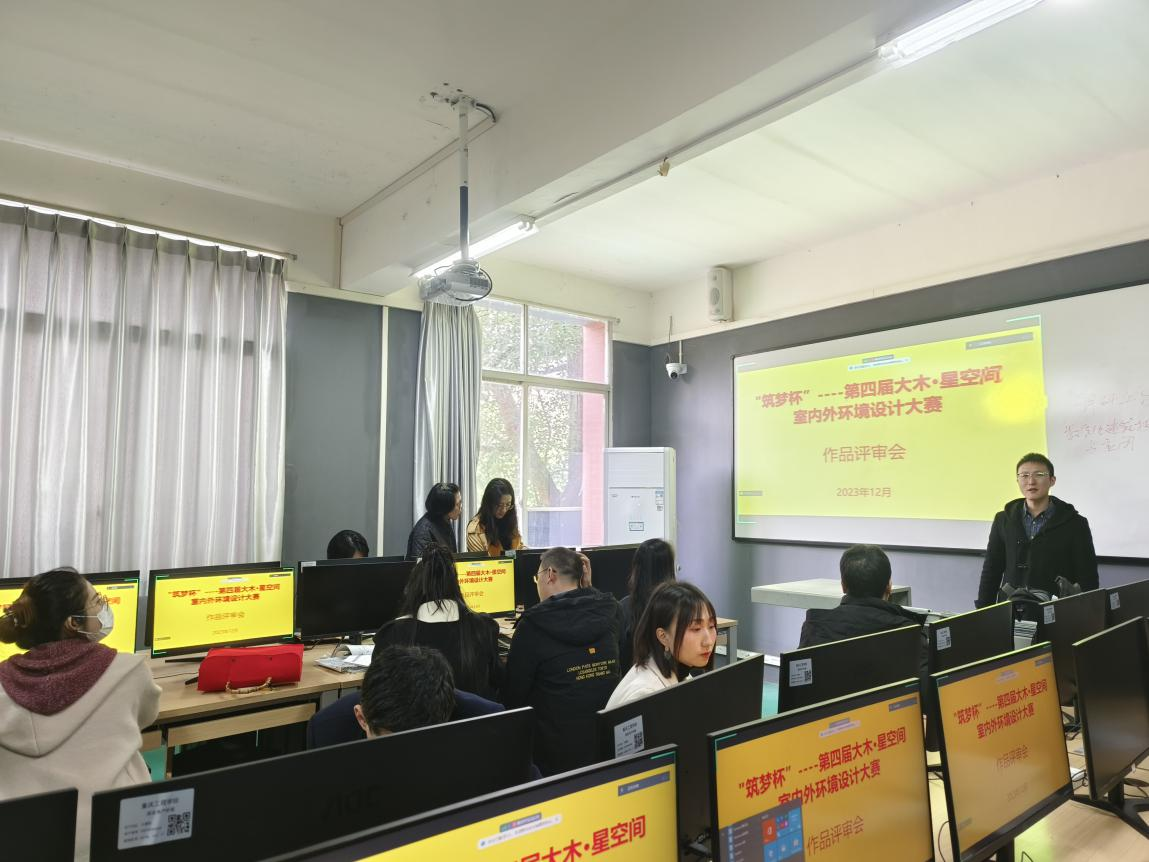 本网讯(文/于建辉 图/陈迎)2023年12月6日下午,重庆工程学院“筑梦杯”第四届大木•星空间室内外环境设计大赛参赛作品评审会在一教206召开。会议由建筑工程学院环境设计系的景观与室内教研室共同组织,于建辉老师主持,景观及室内教研室教师代表担任竞赛评委。