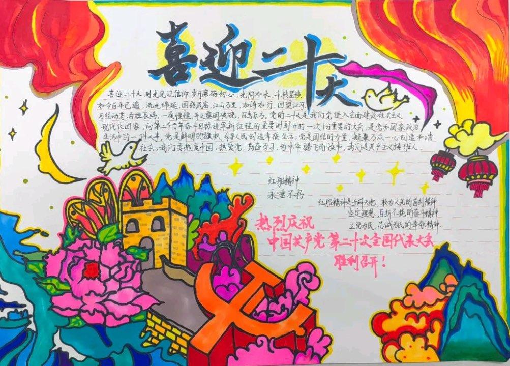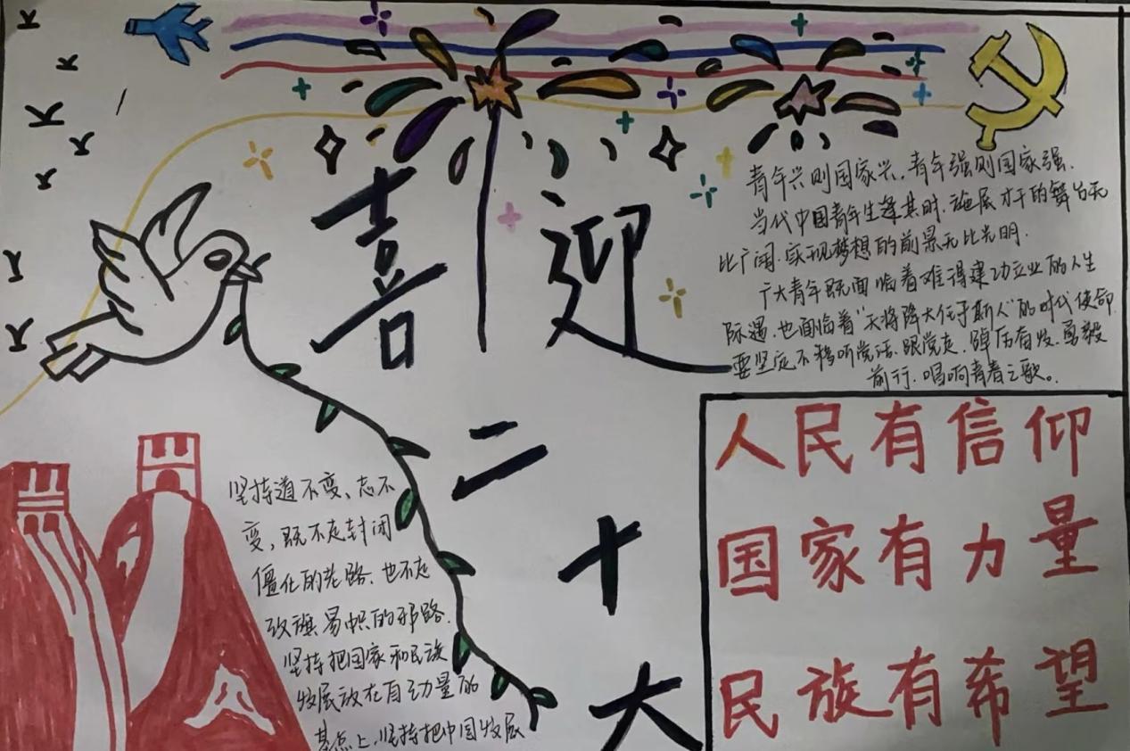 在活动期间,同学们积极参与,遵循党的二十大精神,以社会主义核心价值观、创新驱动等为主题,发挥创意和想象力,亲手制作了形式多样、内容丰富的优秀作品。在制作过程中,同学们采用诸如手绘、摄影、拼贴等制作手法,深入思考、反复尝试,不断优化作品。最终,提交出一幅幅生动形象、富有创意的作品,展示了新时代中国特色社会主义思想的丰富内涵和实践要求。