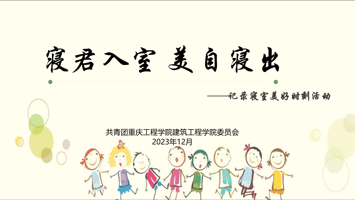 本网讯(图/文 李海燕) 为丰富大学生活,营造互助、互爱、积极、愉悦的校园氛围,定格美好的寝室生活瞬间。建筑工程学院学生会生活部于12月11日至12月17日顺利举办“寝君入室 美自寝出”主题活动。此次活动面向建筑工程学院全体同学。