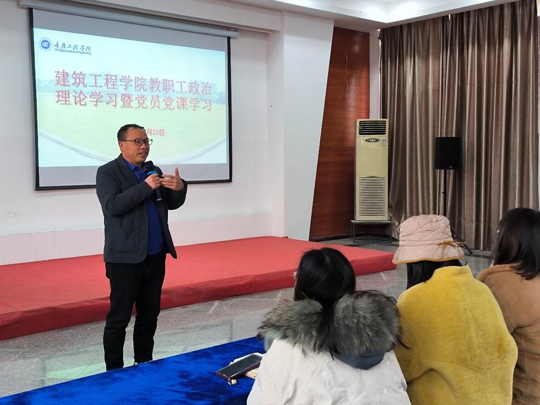 本网讯(文/图 吴俊峰)为进一步学深悟透习近平新时代中国特色社会主义思想,提升教职工政治认识,强化党员政治素养,建筑工程学院于12月22日在学院多功能厅开展教职工政治理论学习暨教师党员党课学习,由雷江院长主讲,全体教职工参与。