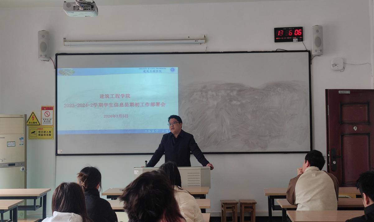 会上,教学秘书苏娜对2023—2024-2学期教学信息员工作部署做了全面介绍,结合上学期学生教学信息员工作中存在的问题并提出了工作要求,希望全体学生教学信息员能真实准确、客观公正的反馈教学运行中存在的问题,以点滴行动为学校教育教学质量的提升贡献力量。