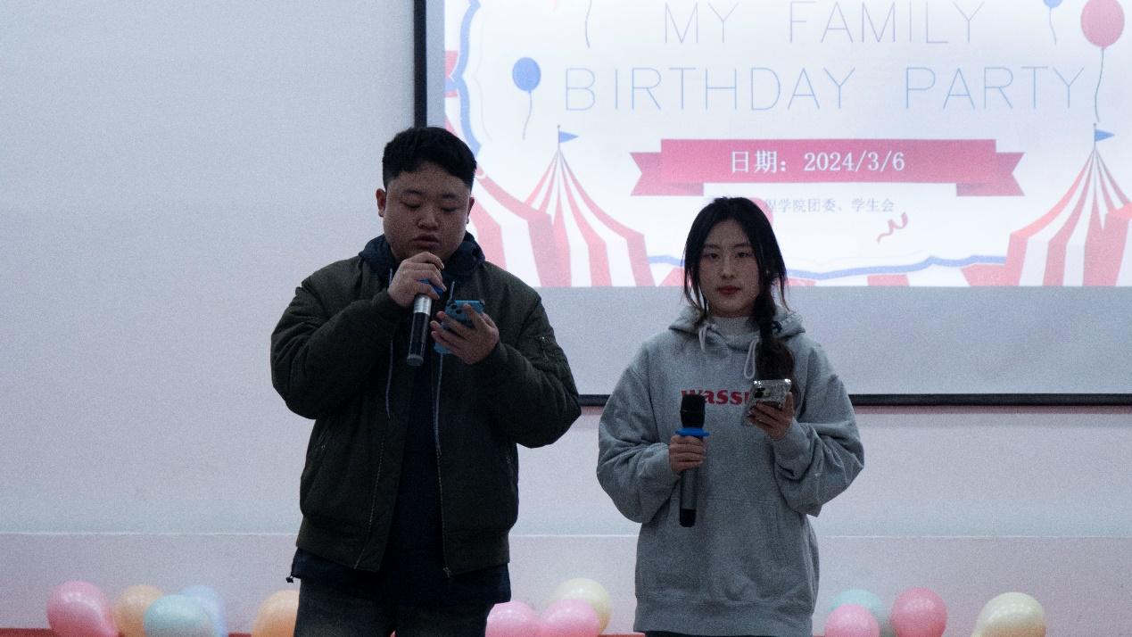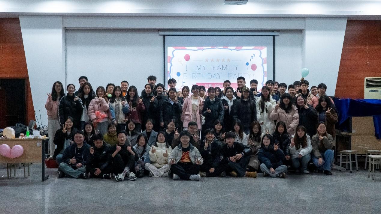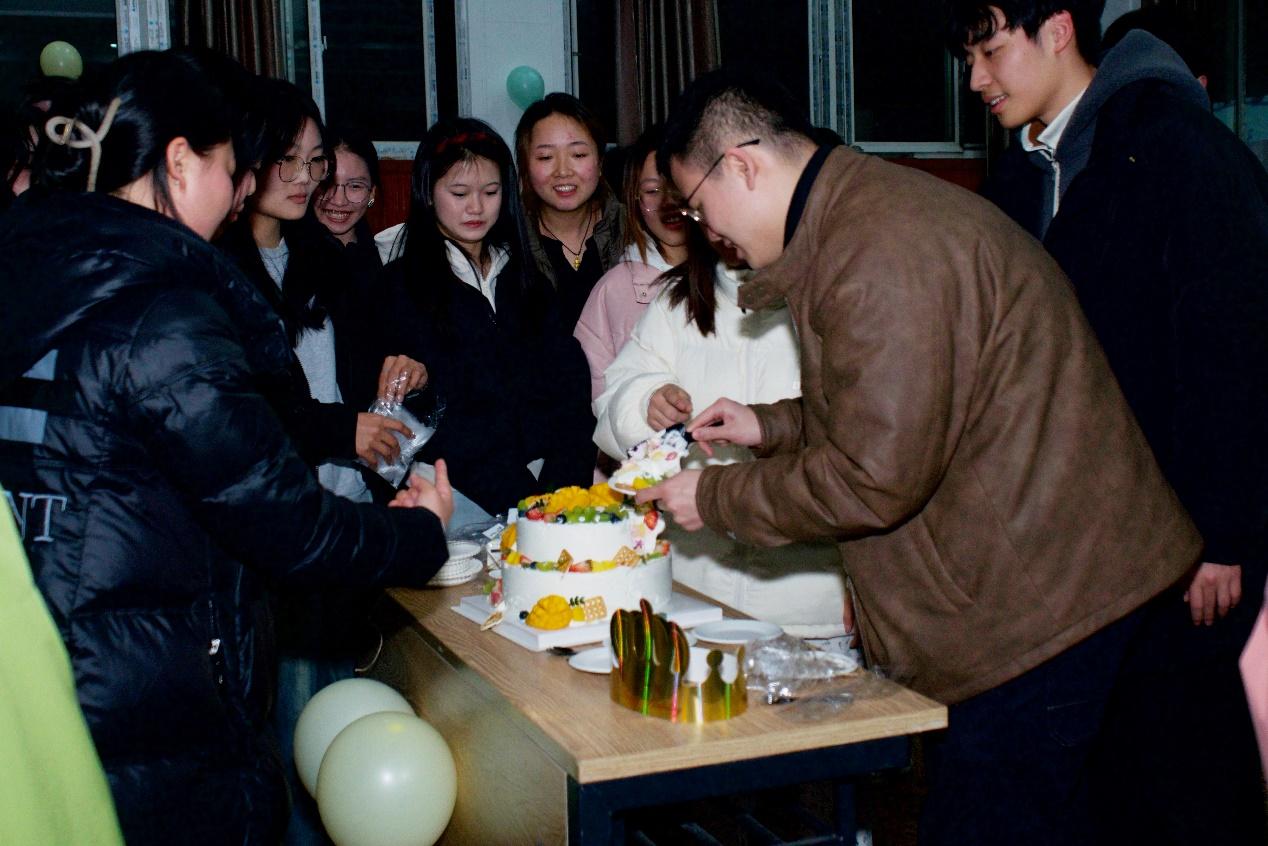 活动开始前,工作人员别出心裁地设计了“击鼓传花”“团团圆圆”和“抢凳子”等小游戏和才艺表演环节。这些精心编排的节目不仅活跃了活动气氛,更拉近了彼此之间的距离,让每位同学都能沉浸在这份欢乐与和谐之中。而整场活动的高潮,莫过于张徐宇书记同大家围坐在一起,齐声唱响生日歌,共同见证切下蛋糕的那一刹那。这一刻,我们不再只是陌生人,而是心与心紧紧相连的一家人。