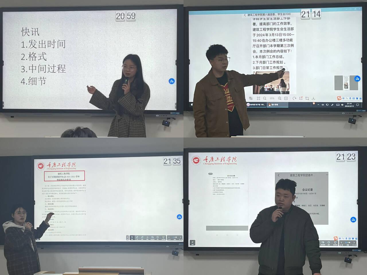 会议伊始,李红碧率先发言,她精准地指出了各部门在新闻稿和快讯编制过程中存在的问题,并系统地规范了新闻稿、快讯的撰写流程。接着,刘子杨逐一审视了前期活动拍摄的照片,他细致地指出了其中的不足,并分享了专业的摄影技巧。周乐东旭重申了学工系统的申请流程以及会议纪要的格式要求,以确保工作的规范性。王陈红则对加分表及策划的格式进行了统一规范,进一步提升了工作的标准化水平。
