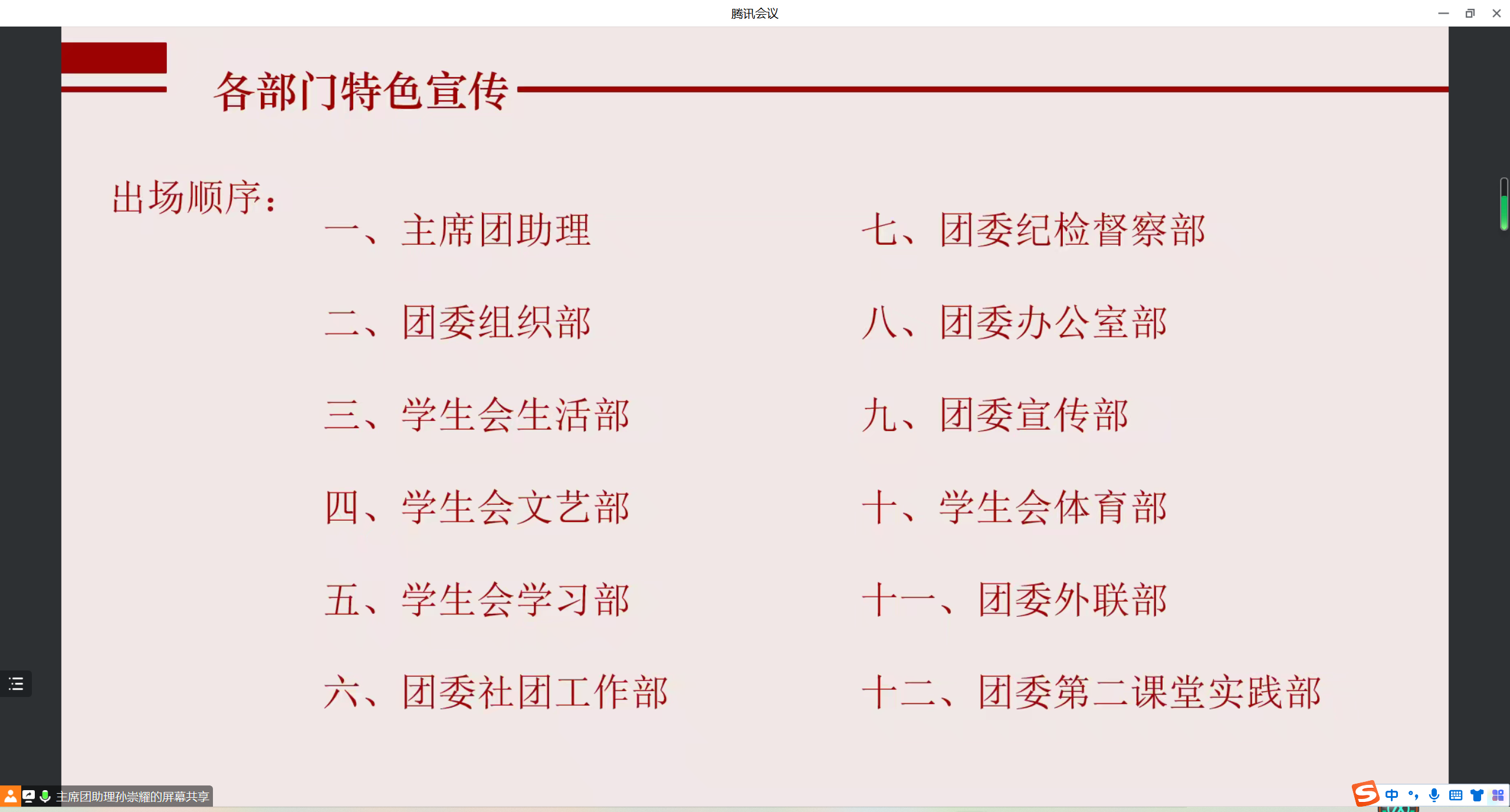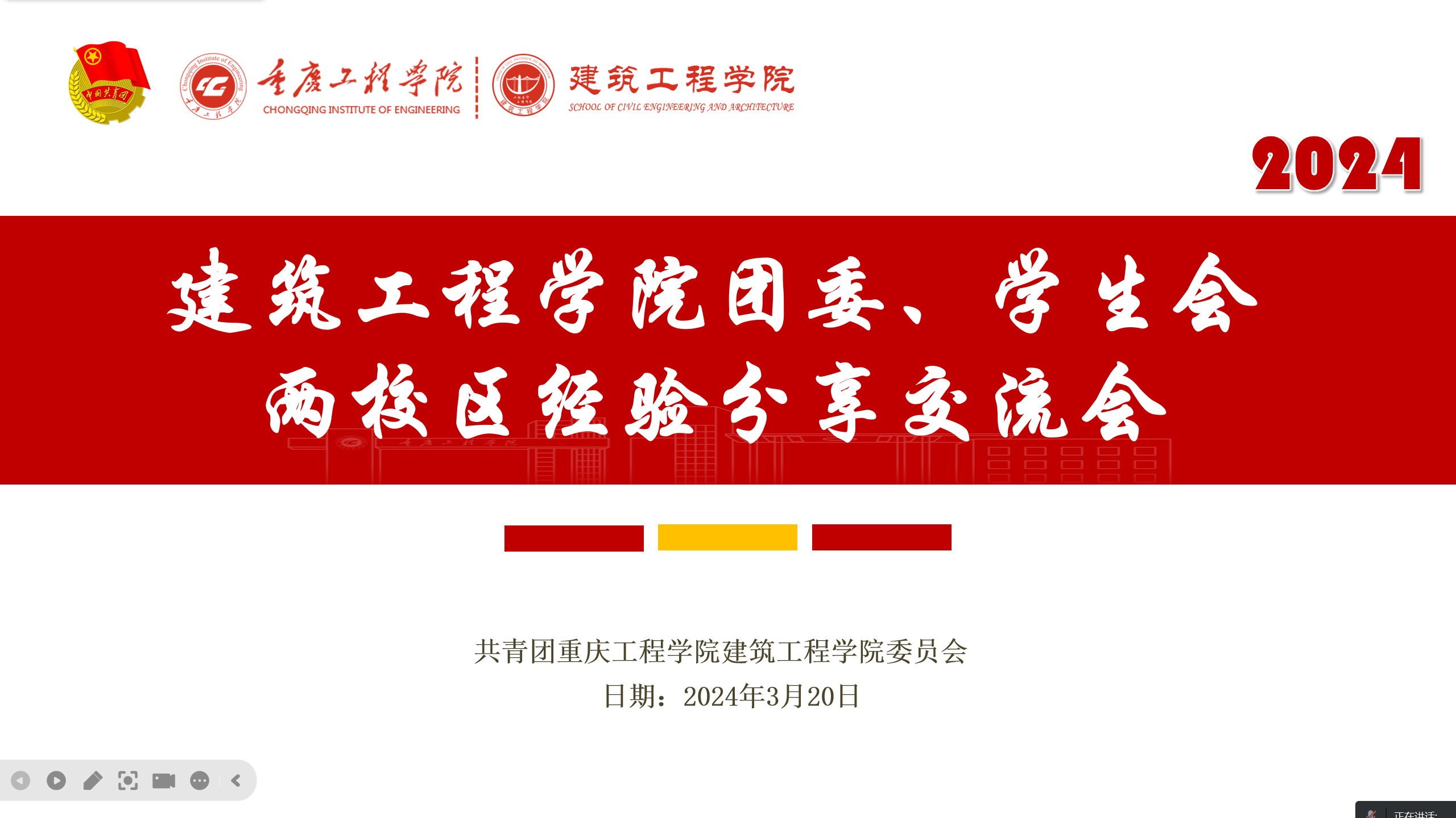 本网讯(文/晏麒智 图/张凤)为促进两校区团委、学生会的沟通交流,帮助大一团委、学生会同学们更了解对于自己现在及未来的规划。建筑工程学院团委、学生会于3月20日15:00—16:30在线上开展两校区经验分享交流会。本次活动面向建筑工程学院团委、学生会21级负责人及22级、23级团委、学生会全体成员。